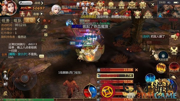双方起点附近人最多,玩家通过时需注意敌方AOE技能释放位置,特别是携带铁血魔旗时,更要避开人多的区域,减少伤害,保存血量,避免被敌方夺旗时秒杀。