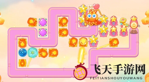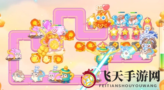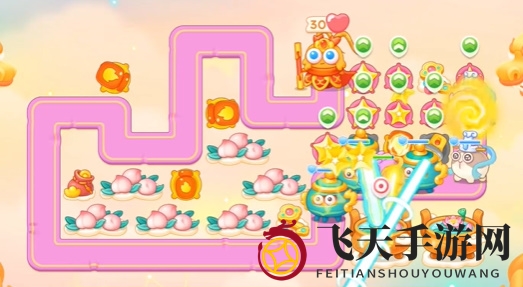 1、游戏开局,迅速在空隙处安放火瓶子,并在萝卜周围额外部署两个星星塔。