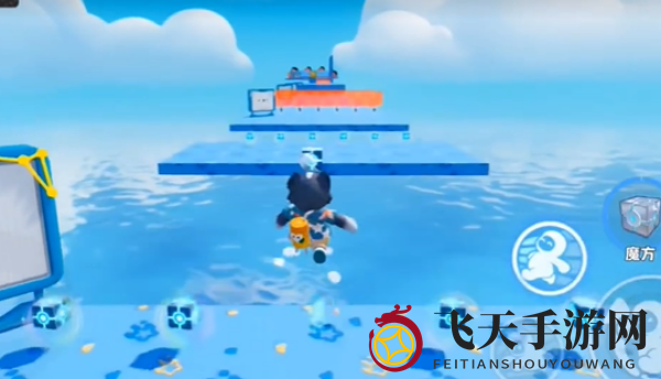 4、跳跃或奔跑中扔出魔方,它能飞得更远,实现更远的传送。