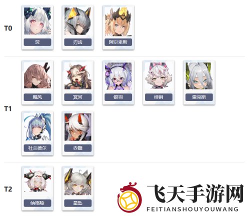 1、T0梯队:荧、刃齿、阿尔卑斯、飓风、冥河、银羽、绯猁、雷克斯