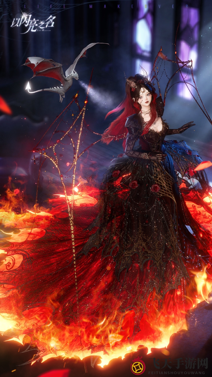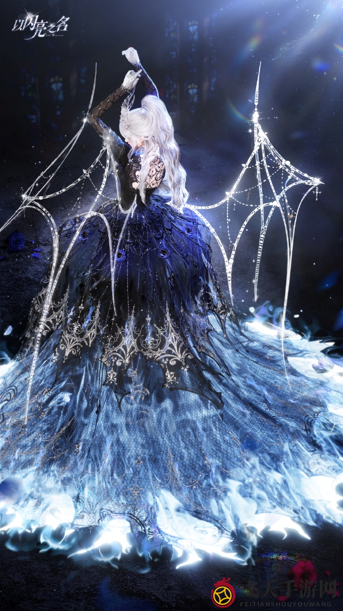 夜渊领主的裙摆仿佛暗夜哥特女神,在焰蓝色火焰与黯冰的交织中绽放出神秘光彩。