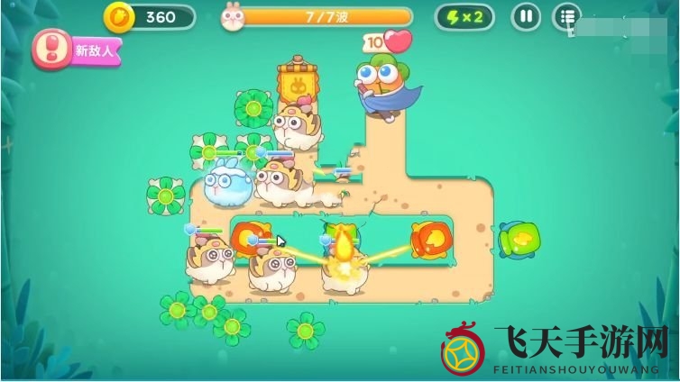 5、最后一波攻击即将来临,特别要留意冰冻兔,一旦它控制了多个炮塔,形势将变得相当严峻。