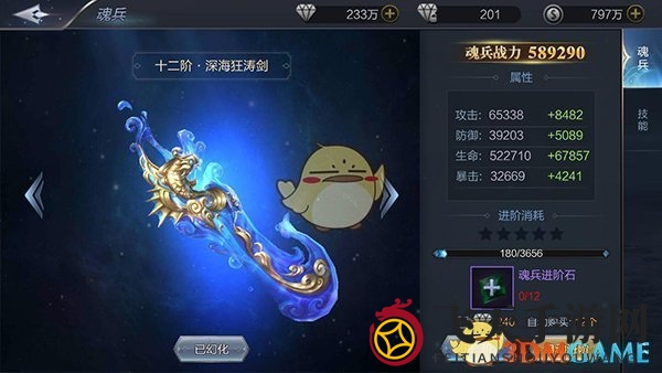 武器注入魔魂之力,永久提高玩家暴击率。(需达到2阶,并拥有致命一击技能书)