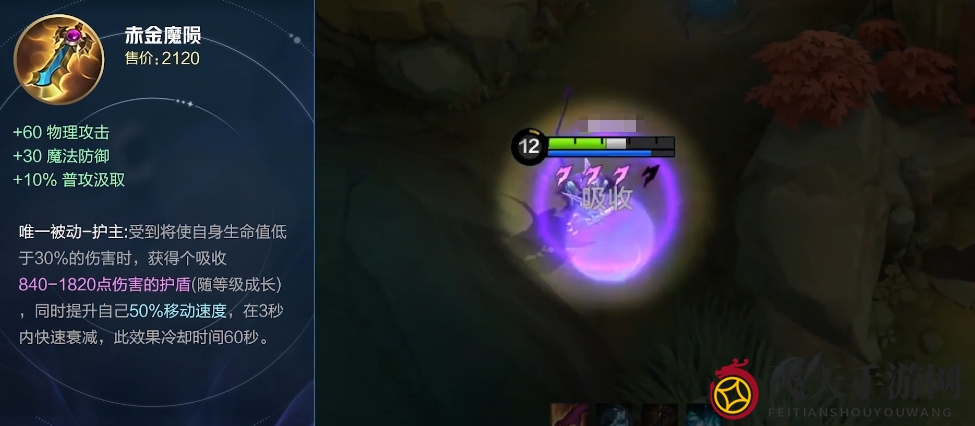 赤金魔陨:仅需1980金币,既增强了攻击力,也不忘提升防御,60点物理攻击、30点法术防御和10%物理吸血,关键时刻还能激活护盾,大幅提高生存几率。
