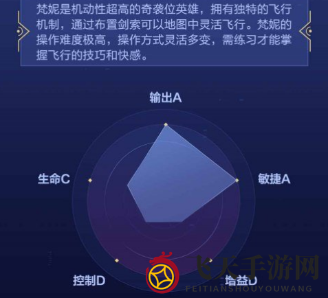 作为一位刺客,梵妮在打野时表现卓越,兼具生存与攻击能力。她的被动技能“空中优势”使她能够在空中灵活移动,提升对敌人的伤害,并标记目标,实施全面攻击。