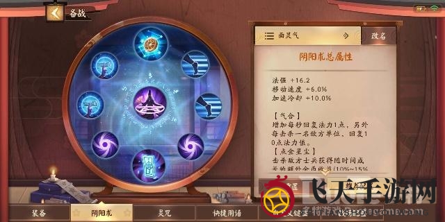 面灵气的阴阳术中,灵咒术CD、气合、移速是必备,再点出法强和技能CD,选择豹袭或言灵星。