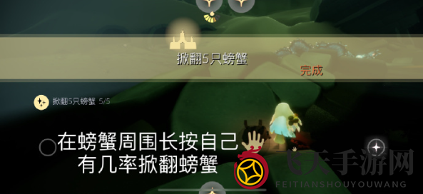在螃蟹周围长按并大声呼唤可翻滚螃蟹