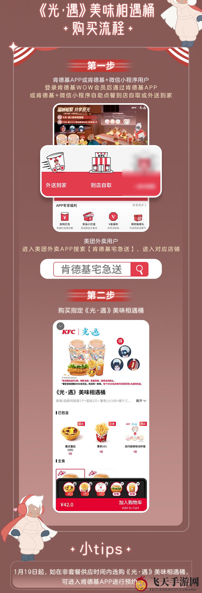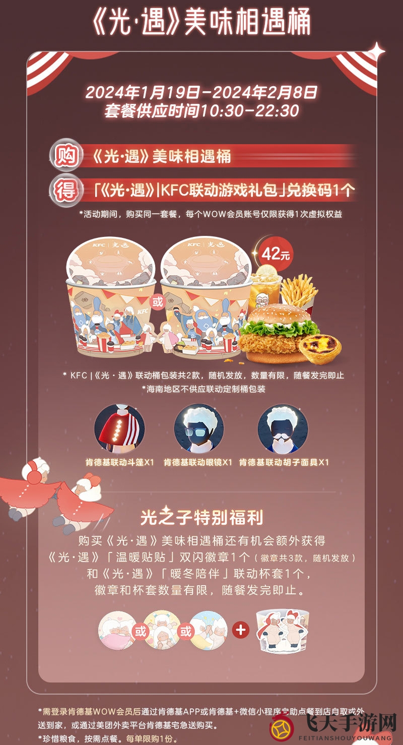 ps.1月19日起,如在非套餐供应时间内选购《光.遇》美味相遇桶,可进入肯德基APP进行预约。