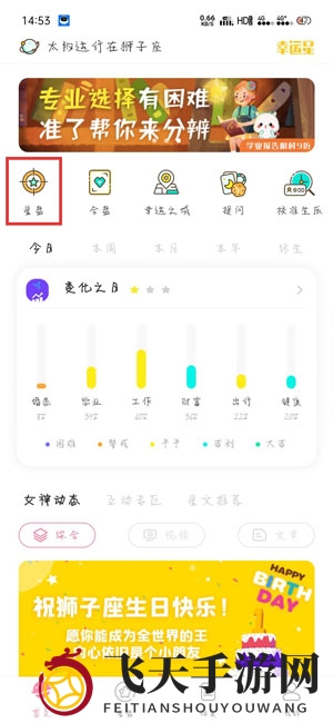 1、拿出你的手机,打开准了APP,点击首页的【星盘】图标,星盘查看界面即刻亮相;