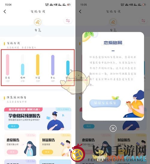 3、在“发现自我”区域,丰富的柱状图分类等你来探索。点击任意一个柱状图,即可深入了解对应类别,这些柱状图就是你的星盘解读导航。