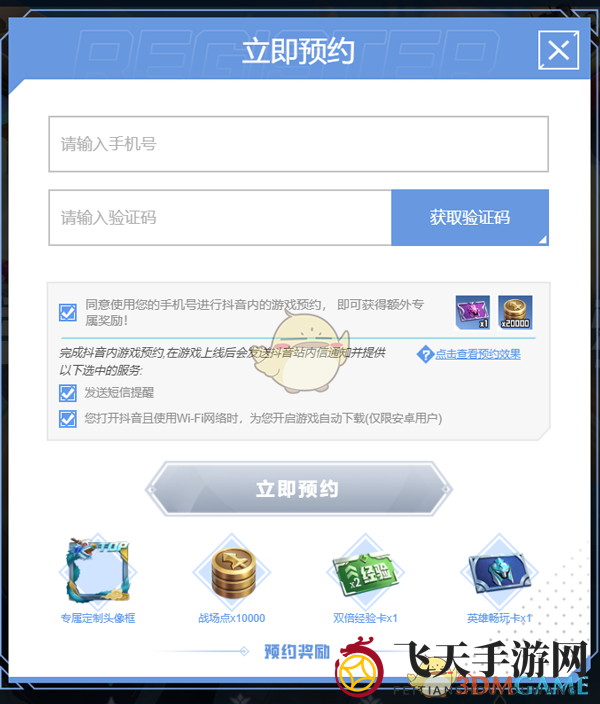 2、预约页面跃然屏上,填写手机号,验证码轻松获取,确认无误后,点击“立即预约”;