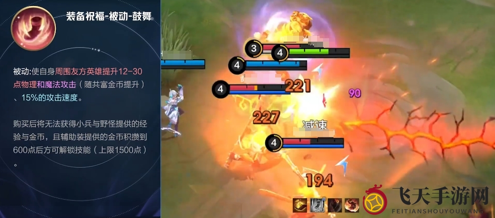 在游戏世界中,玩家可挑选四种游走祝福,其中“鼓舞”的被动效果尤为突出,装备后,周边战友可获得12至30点属性提升,这取决于共享金币量,同时增加15%的攻击速度,但需牺牲击杀小兵或野怪以获取经验和金钱,并且累积至600枚金币才能解锁技能,上限1500枚。