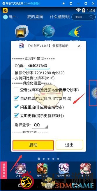 5、双击悬浮窗,进入辅助功能界面,勾选所需功能,点击启动,轻松实现挂机。