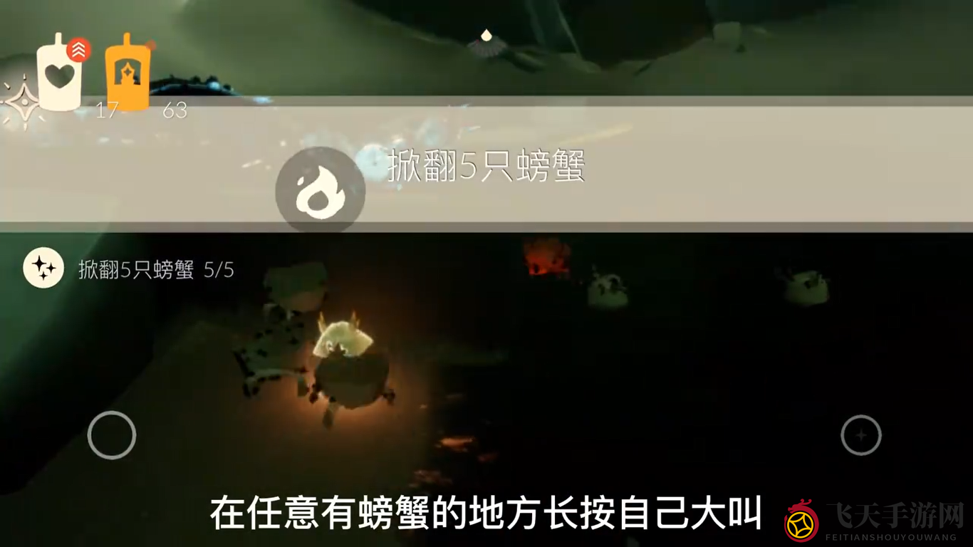 任务三:勇敢对决,挑战螃蟹。在螃蟹周围长按,展示你的勇气,将它们掀翻。