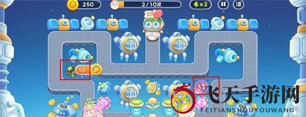 1. 开局时,在左下角和右下角分别部署魔法塔,一边消灭兔兔,一边搜集道具。