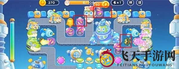 在这一关卡中,多重箭、魔法塔与火箭炮是战胜敌人的关键。新加入的兔兔铁拳兔需要我们扩大火力范围进行清理。关卡布局错综复杂,挑战性不容小觑。