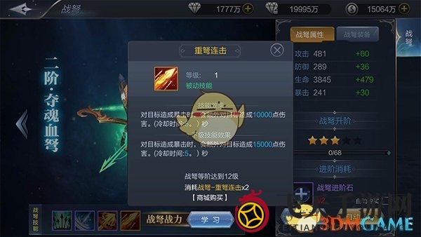 重弩连击:暴击时追加伤害,需战弩等阶12级及技能书。