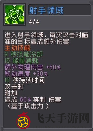射手领域,配合瞄准,开启领域时直接为怪物附加3层瞄准,加上本身的高额物理伤害