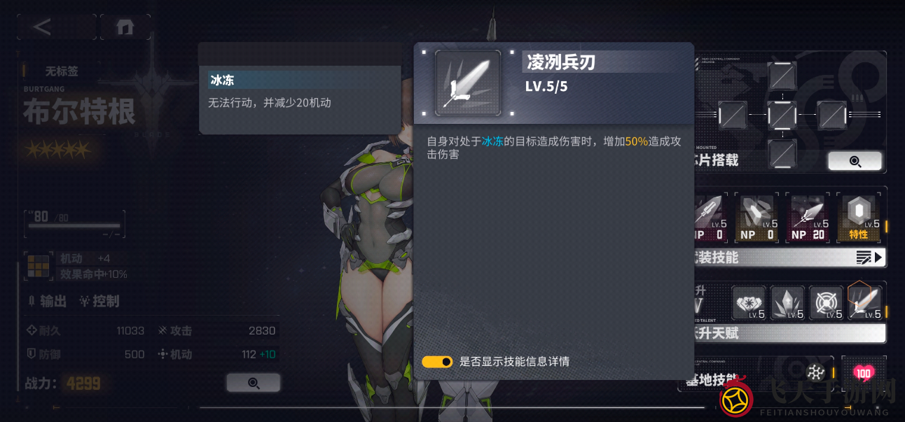 提升自身行动速度20%,并附加1层凝霜,最多5层,不可驱散;凝霜效果:增加20%攻击和20%效果命中
