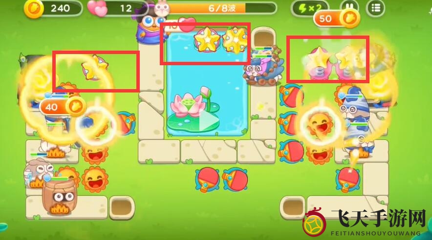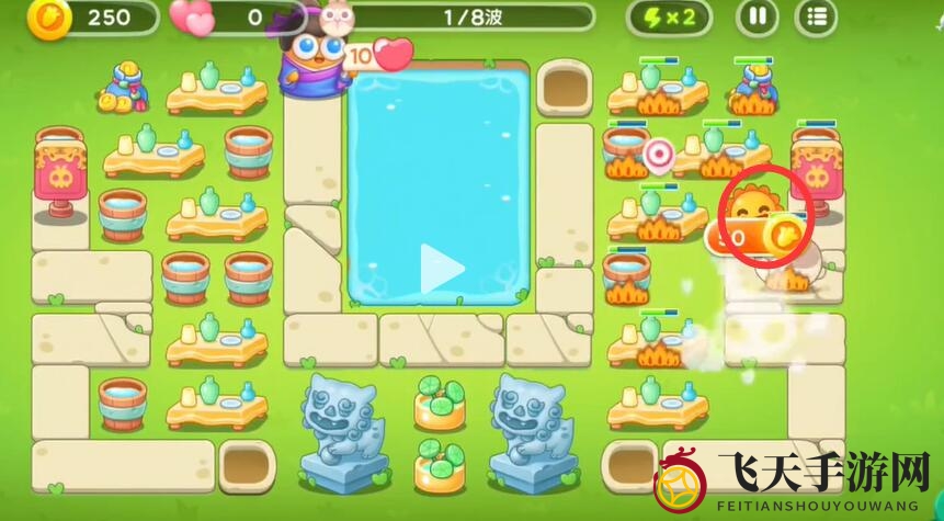 7、金币充裕,合理布局池塘炮塔,全方位保卫萝卜家园。