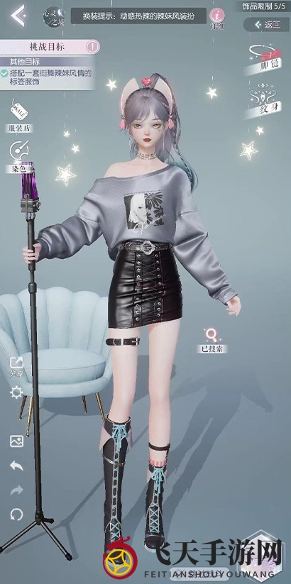 搭配三件辣妹风格服装(此处使用商店三星)和四星性感悦动时装及饰品