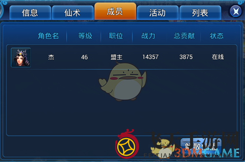 在此,你可以查看到仙盟成员的关键信息。仙盟的公会活动同样令人期待