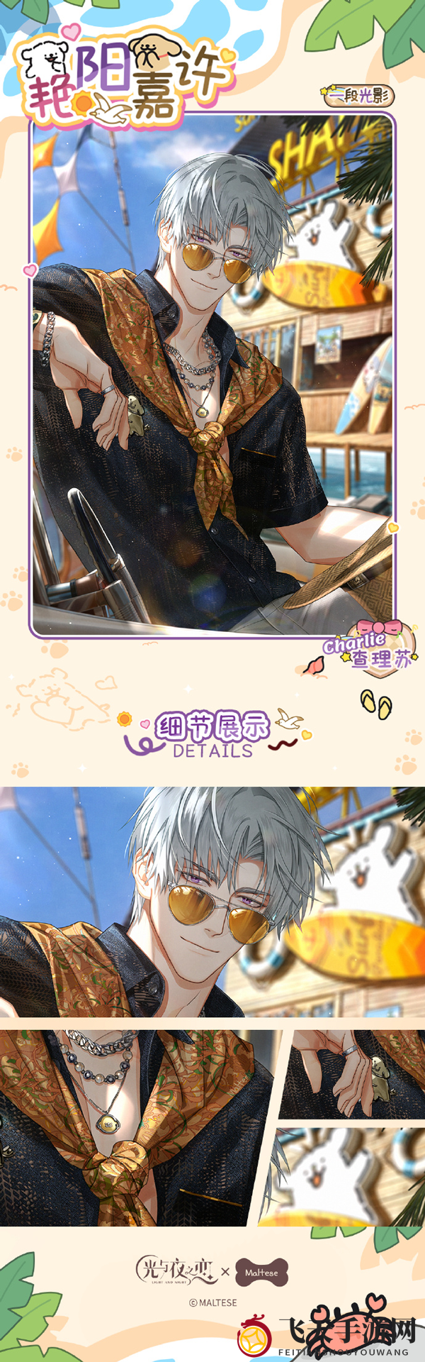 随着阳光洒满大地,携手《光与夜之恋》中的线条小狗,我们迎来了一款充满活力的新卡面——“艳阳嘉许”。查理苏也将以耀眼的光芒,携手这款卡面在【恋爱公告】的特别活动里与玩家们浪漫相遇。这款卡面不仅工艺精湛,细节处理更是引人入胜,现在就由我来揭开这款《光与夜之恋》查理苏艳阳嘉许灵犀卡面的神秘面纱,敬请期待。
