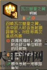 最后一个技能选择较为随意,我选择了瓦尔基里呐喊。主要看重其消除敌方投射物的效果,在某些BOSS关卡,如哥布林巫师,效果显著。跟踪箭矢也属于普通攻击,可以叠加战意。