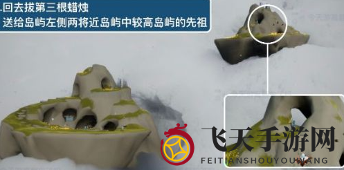 4. 继续摘取第三根蜡烛,送给左侧并排岛屿中较高岛屿的先祖,具体位置见下图:
