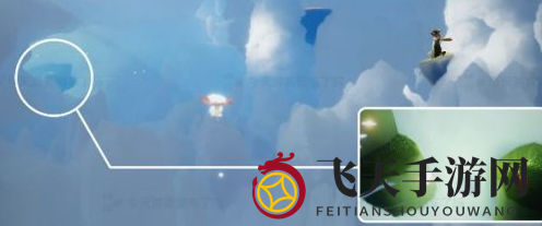 6. 完成任务一后,主岛屿对面的云道将部分开放,玩家可通过云道右边的第一个平台路标指向的通道进入雨林深处,并发现一个新增的蜡烛点(见小图标识)。