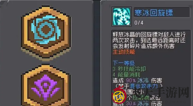 在介绍完基础加点后,接下来是技能加点。某些技能的强度与技能点数密切相关。尽管属性加点有多种选择,但技能加点有明确要求。首先,建议优先提升【寒冰回旋镖】技能,它能够有效清除小怪,释放回旋镖进行两次攻击,并在最终释放位置造成额外伤害。