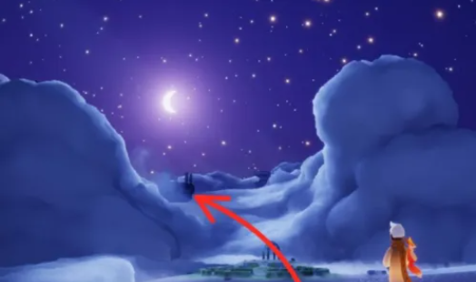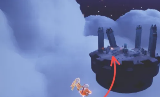 2、飞跃云海,借助附近云朵助力,抵达图中所示平台;