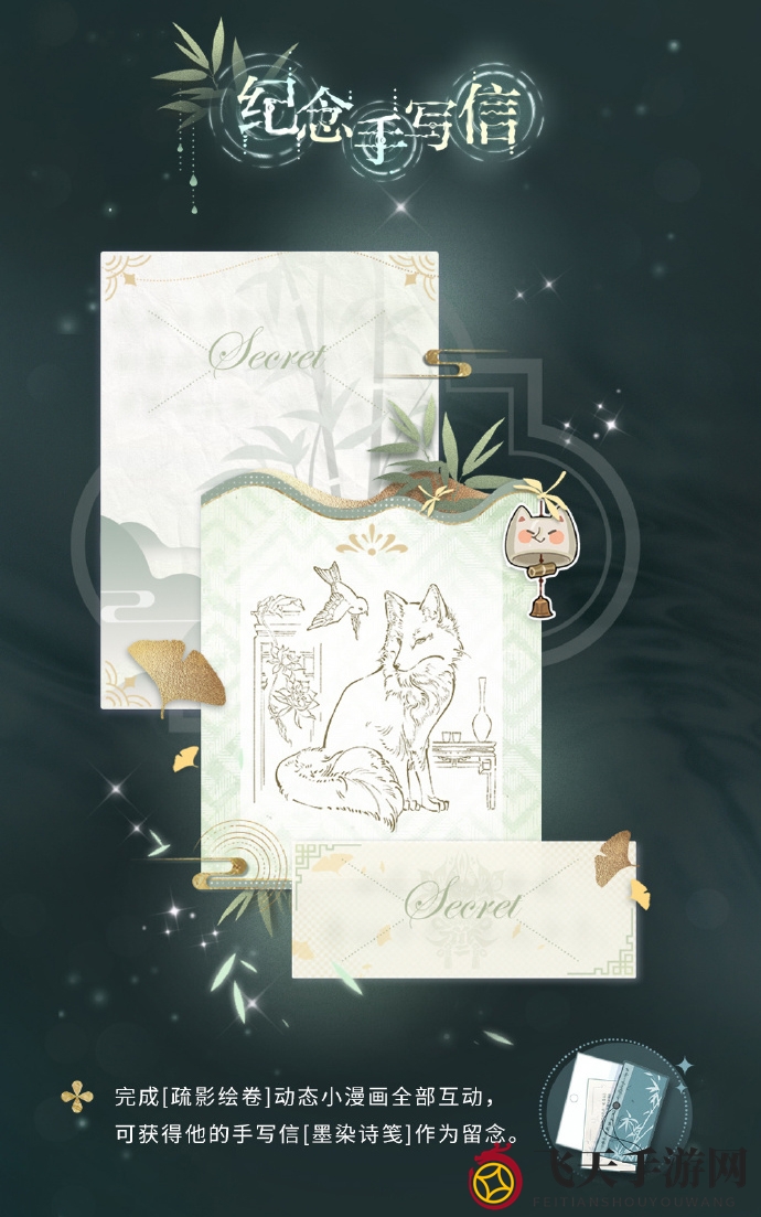 3. 纪念手写信:完成[疏影绘卷]动态小漫画全部互动,你将获得齐司礼的手写信[墨染诗笺]。