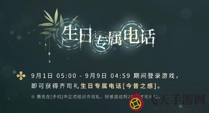 ※ 生日专属电话需先在[手机]中正式结识齐司礼、好感度达到2级后才可体验。