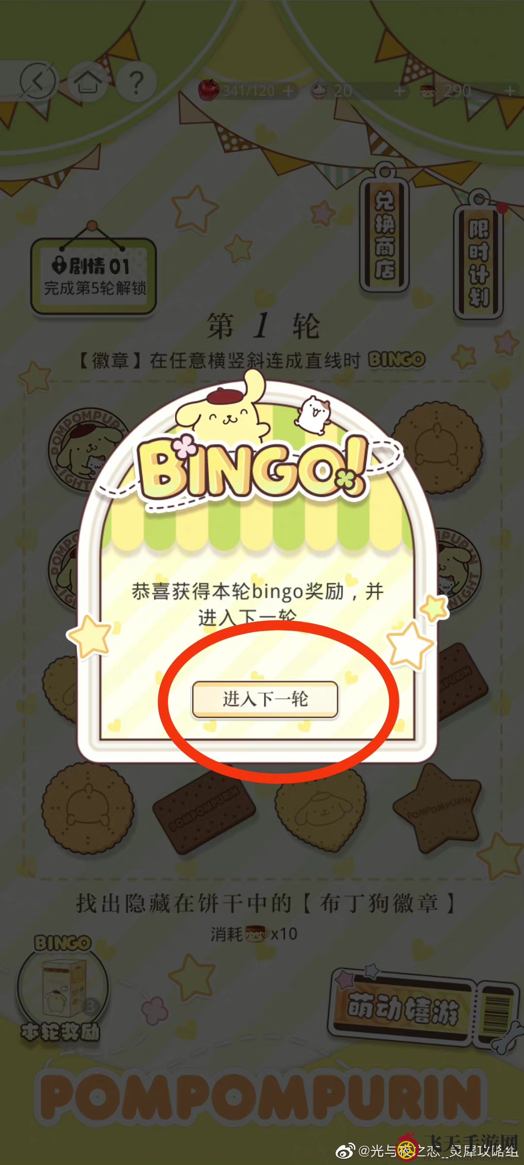 在【稚趣茶会】中收集布丁狗徽章,四徽章连成一线即可获得bingo大奖。无论横竖斜,都能触发大奖,获得大奖后即可解锁下一层。