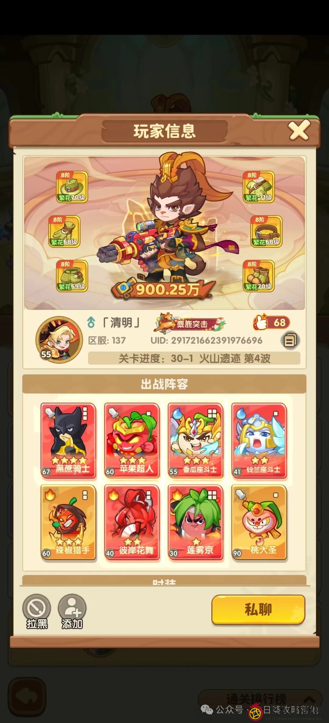 阶段3、甘蔗+冬瓜+西瓜:甘蔗加入即提升阵容,可挑战二十几章,资源充足可挑战三十章,西瓜用于击飞