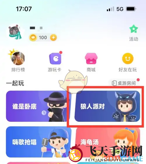 1、进入“会玩”首页,聚焦狼人派对专区。