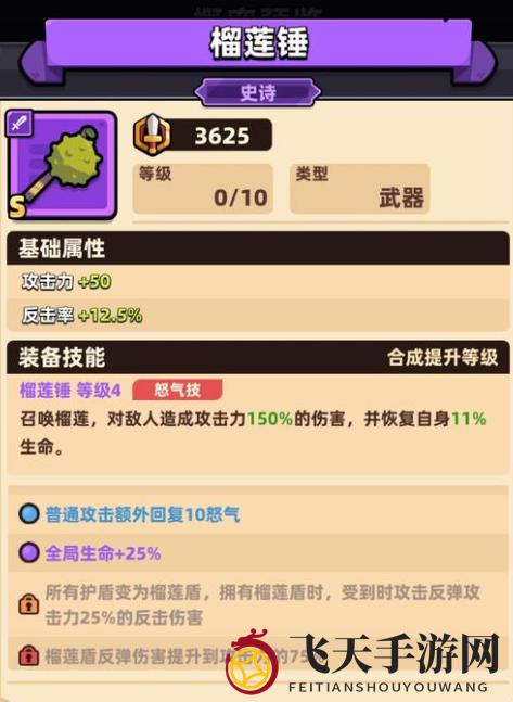 对于骑士玩家,榴莲锤是游戏中的福利。作为骑士专属,合成难度不高。通关或开启宝箱后,玩家即可获得合成材料。合成材料包括十个榴莲、一条铁链和十个铁块。等级17级后,可找工匠制作。不满意可花费500金币重制,无需消耗道具。