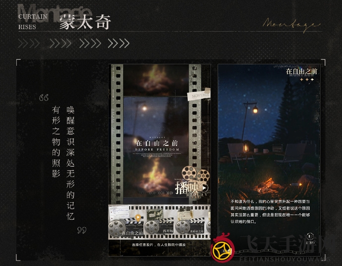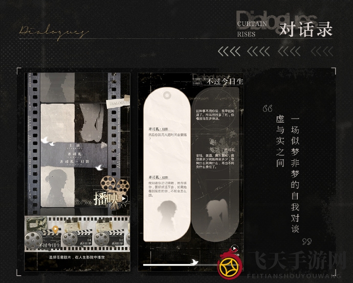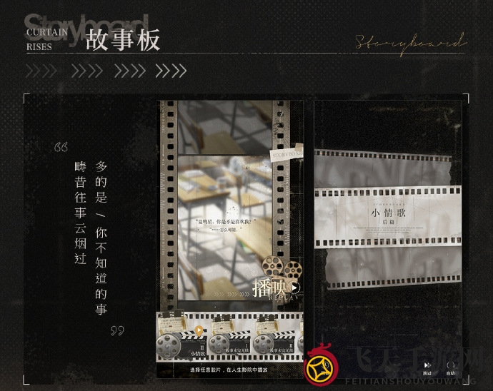 玩法简介:在[胶片]影院里,玩家将得以观赏到[蒙太奇][对话录][故事板]三种不同风格的剧情片段。使用道具[追光之影],玩家可以回顾那些已发生或未曾发现的往事。