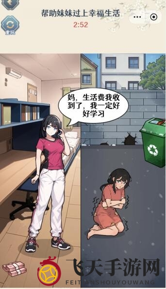 5、后续场景,将所有收入用于右侧妹妹的生活开销