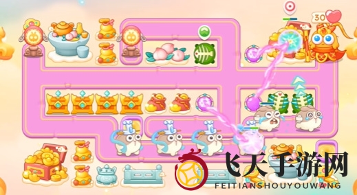 1、初始布局使用魔法球,巧妙融合鱼骨炮塔,强化防御线。