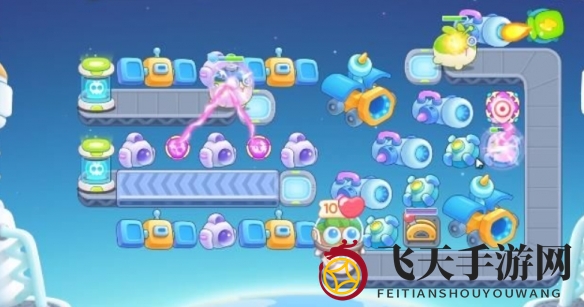 3、游戏后期,萝卜兔将驾驶飞船进攻,这时,预先布置的烟花炮将发挥出其强大的防御作用。