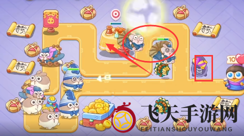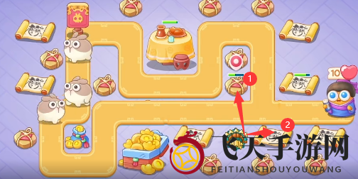 5、道具利用:清理道具后,核心区布多重箭,防守不足时,泡泡塔可减缓敌人速度。
