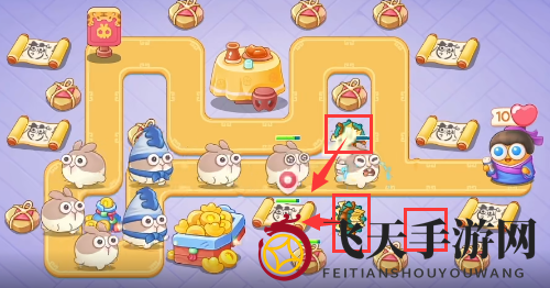 4、应对飞行兔:使用烟花炮塔,升级后更有效,同时多重箭继续扩张地图。