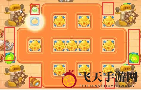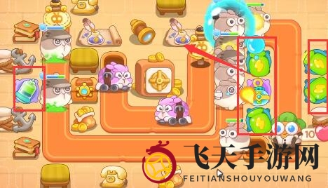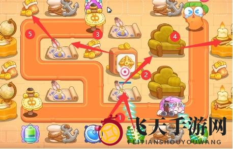 4、放置炮塔位置如图,本关只需全部放置分鱼刺即可通关。