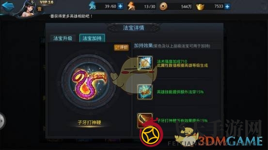 加持属性:1号加持位增加法术强度,2号加持位增加法术穿透,3号加持位提升子牙打神鞭所有效果15%。