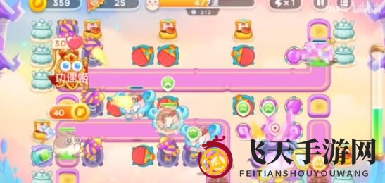 1、游戏开篇,在左下角空地布下毒针,右侧空地安放球拍,锁定邻近道具进行攻击。待兔子从右上角出现,立即对兔子发起进攻,其余时间集中清理道具,道具清理完毕后安放球拍和魔法球;