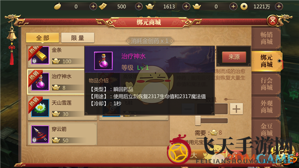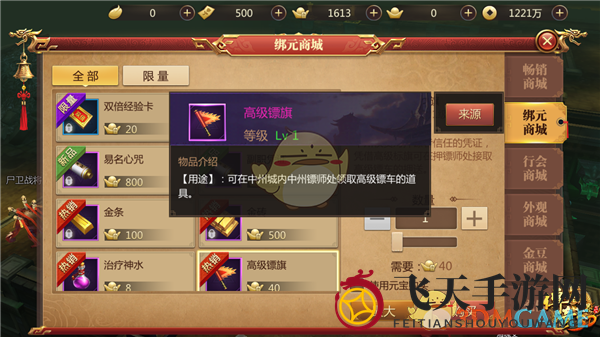 在绑元商城,挑选道具是一门艺术。强烈建议优先购买双倍经验卡、高级镖旗和神翼进阶凭证。双倍经验卡每日仅限购三张,对玩家的长期发展至关重要,确保在刷怪或探险时经验不虞匮乏。