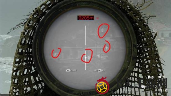 第一狙击点,射击后要避免触发敌人的逃跑动画。