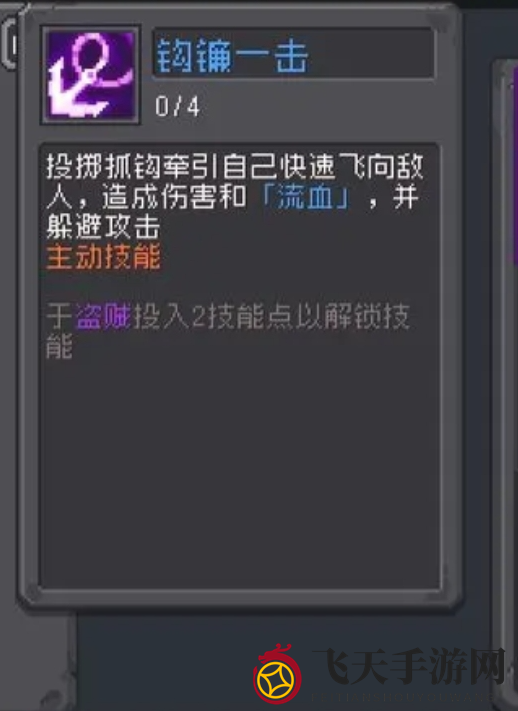 “钩镰一击”通过投掷抓钩快速接近敌人,造成伤害和流血效果,与刺客技能组联动,间接提升了忍者的生存能力。